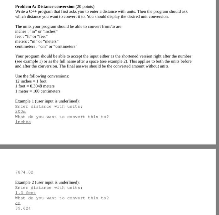 Solved Problem A Distance Conversion 20 Points Write A Chegg Com