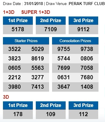 4d Result Malaysia 4d Results For Malaysia And Singapore 31st January 2018
