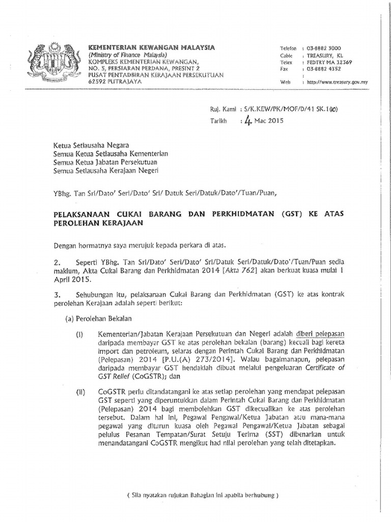Pekeliling Perbendaharaan Malaysia Pk 1 2013 Pengecualian Gst Pdfpekeliling Perbendaharaan Malaysia Pk 1 2013 M S 37 44 C Syarat Mewajibkan Syarikat Firma Yang Berurusan Dengan