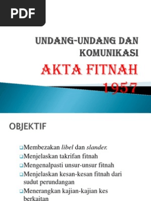 Kuiz Undang Undang Dalam Komunikasi Docx Tajuk Akta Fitnah 1957 Akta Fitnah 1957 Mula Dikuatkuasakan Di Semenanjung Malaysia Pada 01 Julai 1957 Dan Course Hero