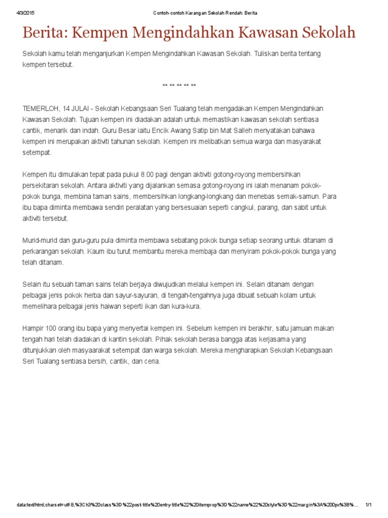 Contoh Contoh Karangan Sekolah Rendah Berita Kempen Mengindahkan Kawasan Sekolah