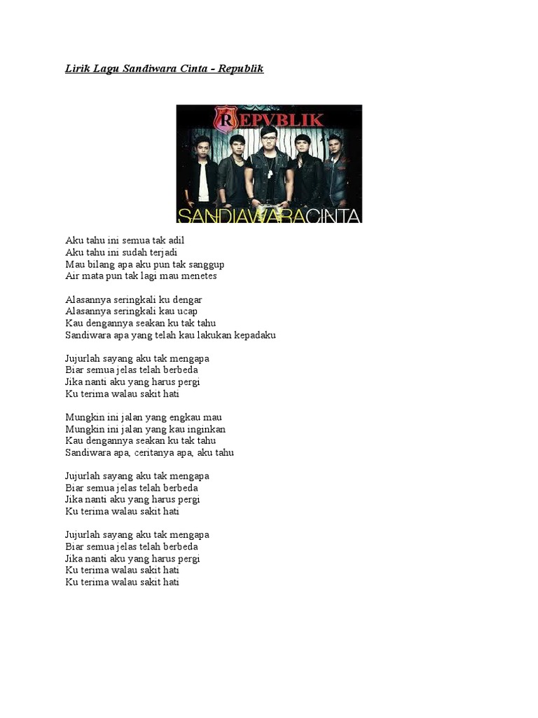 Lirik Lagu Sandiwara Cinta By Repvblik Jujurlah Sayang Aku Tak Semua Halaman Sonora Id