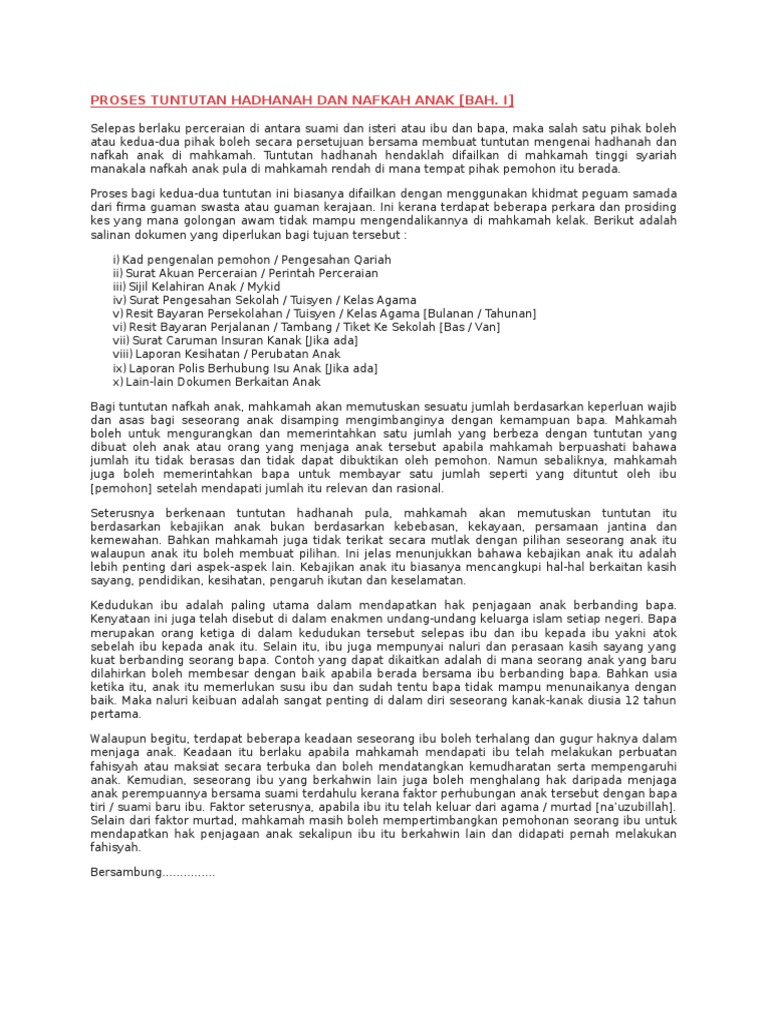 Proses Tuntutan Hadhanah Dan Nafkah Anak