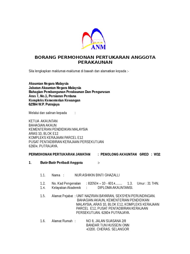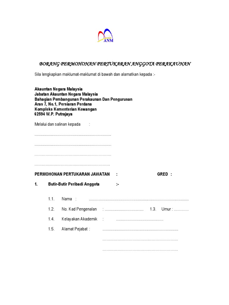 Borang Permohonan Pertukaran Anggota Perakaunan