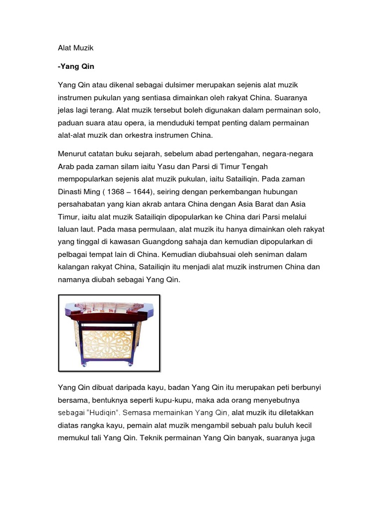 Panitia Pendidikan Muzik Smk Machang Bubuk Sejarah Yangqin Alat Muzik Tradisional Kaum Cina