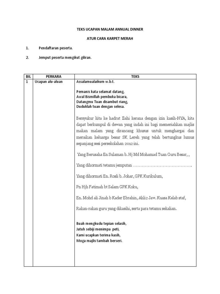 Doc Contoh Teks Ucapan Pengacara Majlis Sempena Jamuan Saadiah M Academia Edu