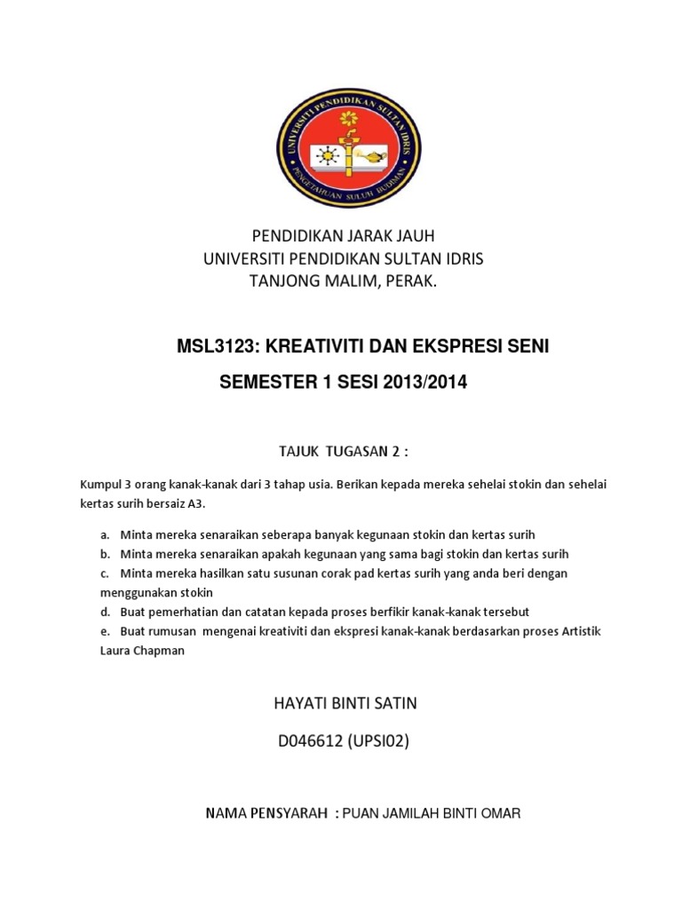 Tugasan 2 Msl3123 Kreativiti Dan Ekspresi Seni Pdf