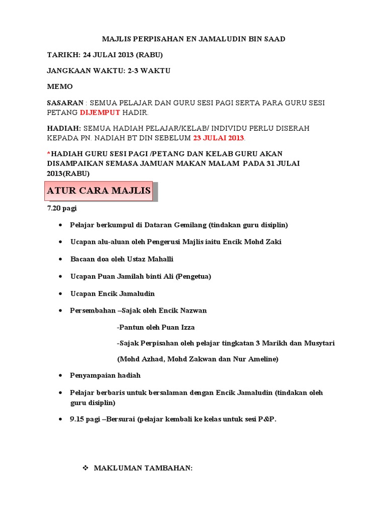 Doa Majlis Makan Malam Perpisahan Doa Sempena Pertandingan Pidato Doa Sempena Festival Nasyid Pdf Document