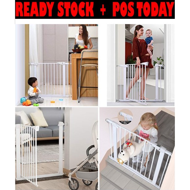Malaysia Pagar Besi Bayi Baby Safety Gate Extra Tall Walk Through Stair Lock Pressure Mount Adjustable Osh