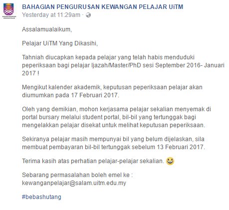 Sultan Kl On Twitter Pertolongan Extra Dr Bahagian Pengurusan Kewangan Pelajar Uitm Weekends Tu Beb Terima Kasih Uitmdihatiku Gitchuuu Http T Co Igxvtz3xkz