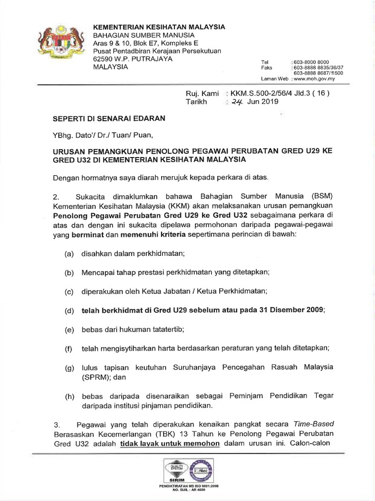 Borang Dan Iklan Urusan Kenaikan Pangkat Secara One Off Bsm