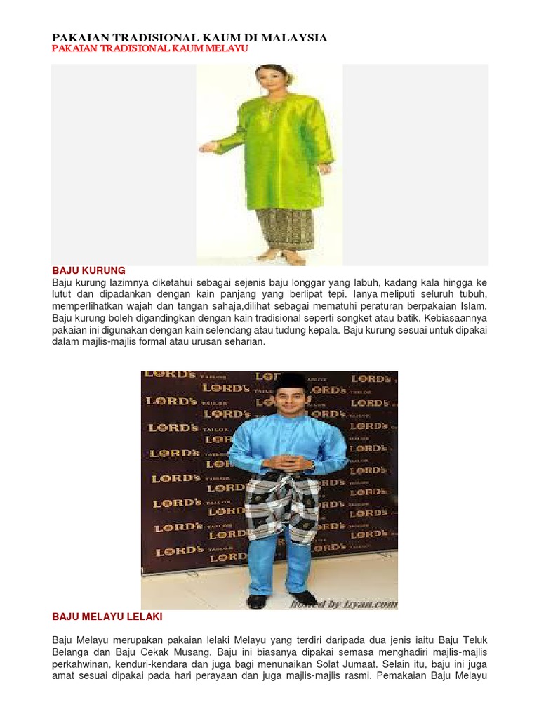 Pakaian Mengikut Kaum Di Malaysia Malaysiaku
