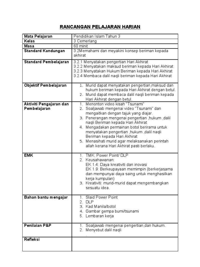 Pelajaran 7 Beriman Kepada Hari Akhirat Pendidik Islam Tahun 3