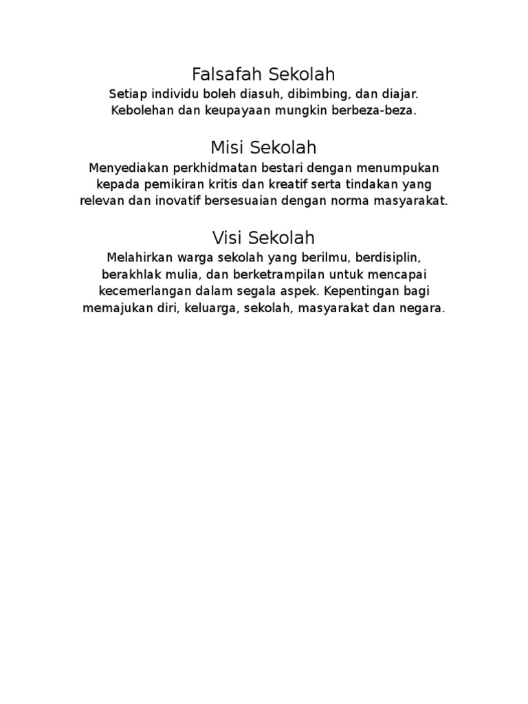 Falsafah Sekolah Visi Dan Misi