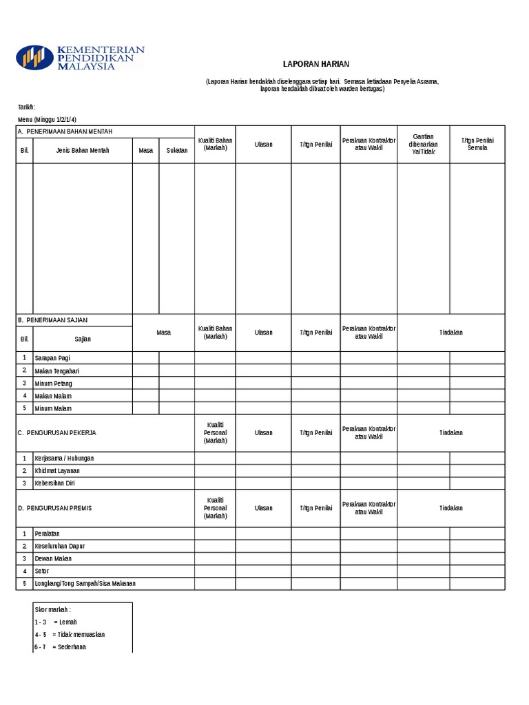 Borang Kaji Selidik Kepuasan Pelanggan Kontrak Perkhidmatan Bekalan Makanan Bermasak