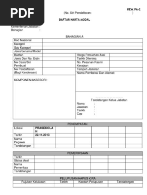 2 Kew Pa 2 Daftar Harta Modal Doc No Siri Pendaftaran Kew Pa 2 Daftar Harta Modal Kementerian Jabatan Bahagian Bahagian A Kod Nasional Kategori Sub Course Hero