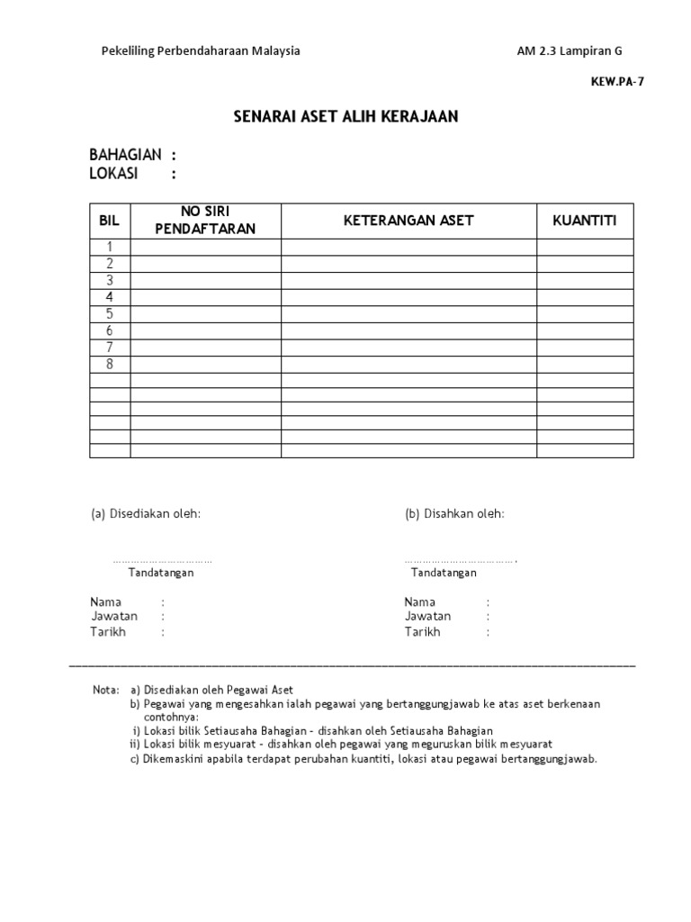 Kew Pa 5 Borang Senarai Daftar Inventori Pdf Document