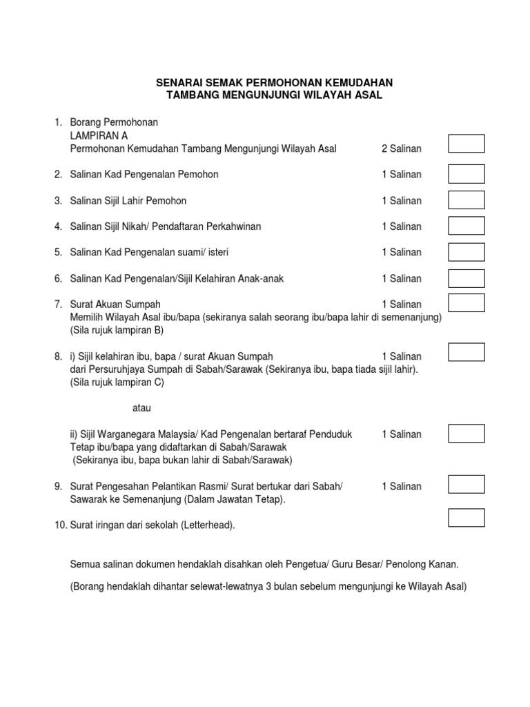Borang mengunjungi wilayah asal lampiran a. Mengunjungi wilayah asal mengikut. 5 ibu negeri wilayah. Lampiran a borang permohonan kemudahan tambang mengunjungi wilayah asal pekeliling perkhidmatan bilangan 22 tahun 2008 a. Borang kemas kini ogos 2017 1 borang permohonan kemudahan tambang mengunjungi wilayah asal pekeliling perkhidmatan bilangan 22 tahun 2008 a.