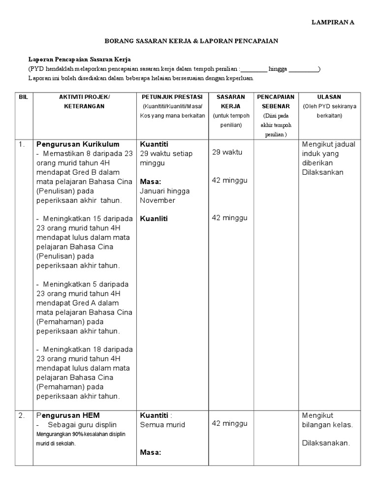 Doc Lampiran A Borang Sasaran Kerja Laporan Pencapaian Sang Kaya Academia Edu