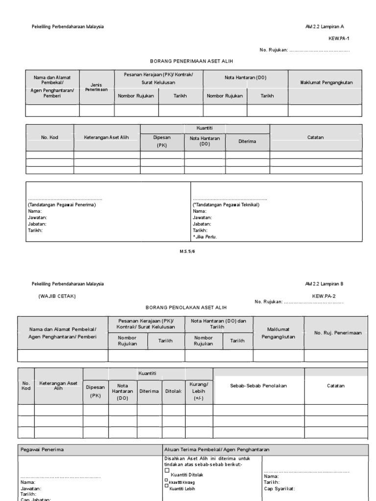 Senarai Jenis Jenis Borang Kew Pa Aset