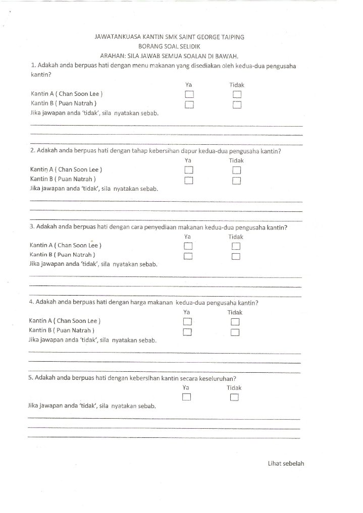 Borang Soal Selidik Kantin Sesi 2014 Doc Doc Document