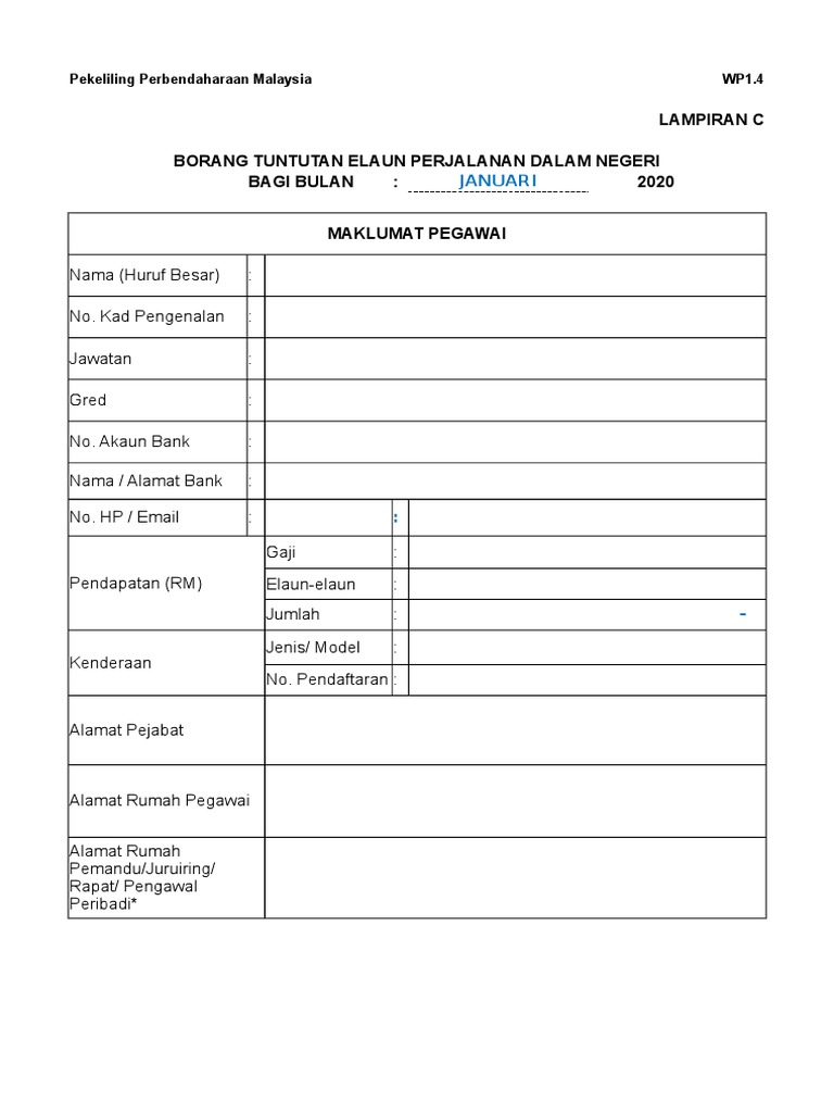 Borang Tuntutan Perjalanan Dalam Negeri Wp1 4 1 Januari 2020
