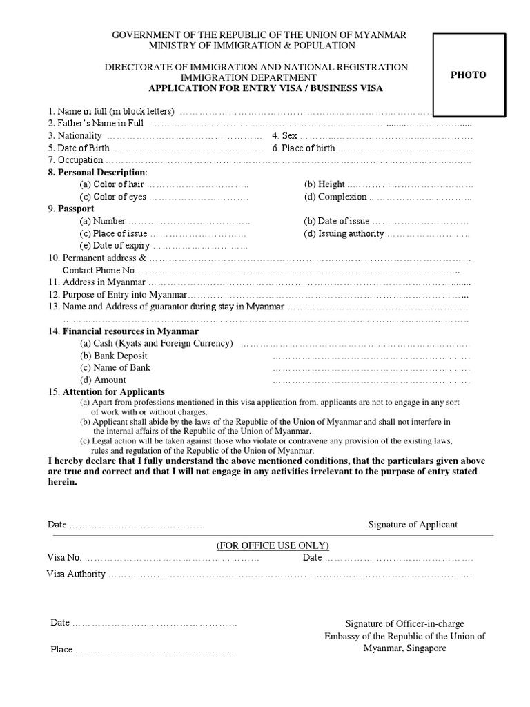 Myanmar Business Visa Application Form Pdf Vincegray2014