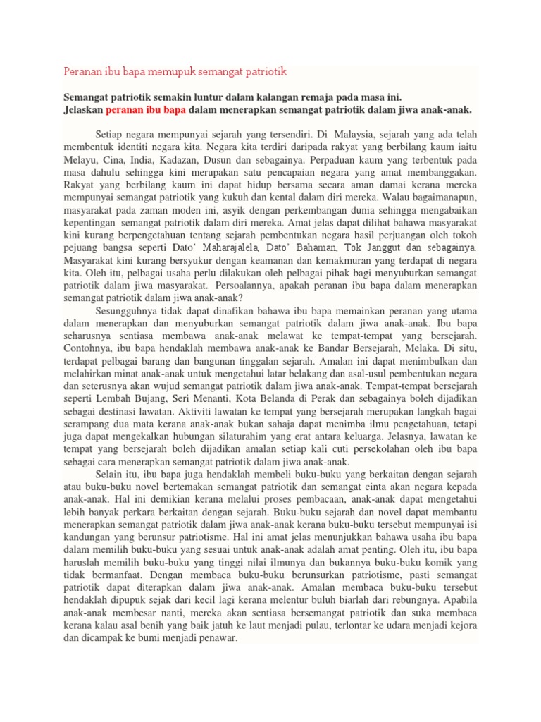 Karangan Cara Cara Memupuk Semangat Patriotik Dalam Kalangan Murid