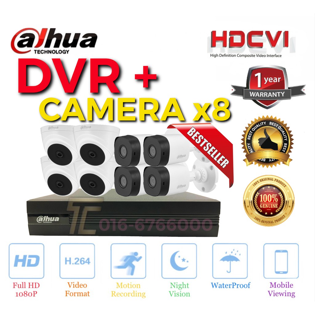 Dahua 8 Channel 2mp Full Hd 1080p Cctv 2 0mp 8ch Dvr Camera Package Set P2p View On Phone Support Night Vision Shopee Malaysia