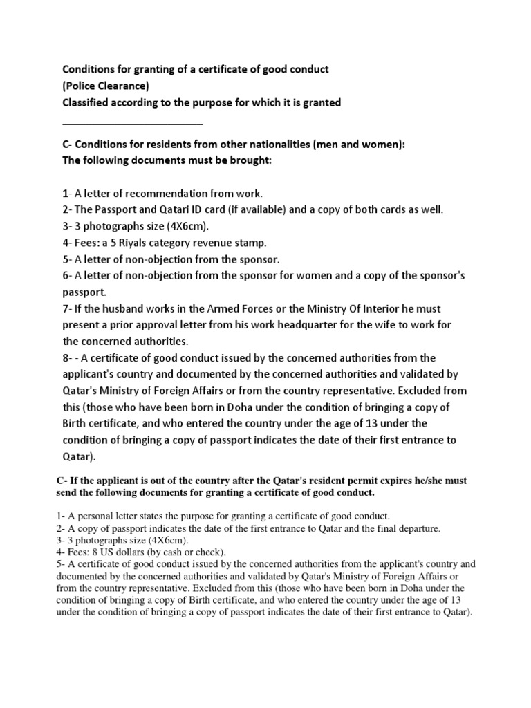 Qatar Police Clearance Certificate Of Good Conduct By Qatar Police Clearance Trepup Com