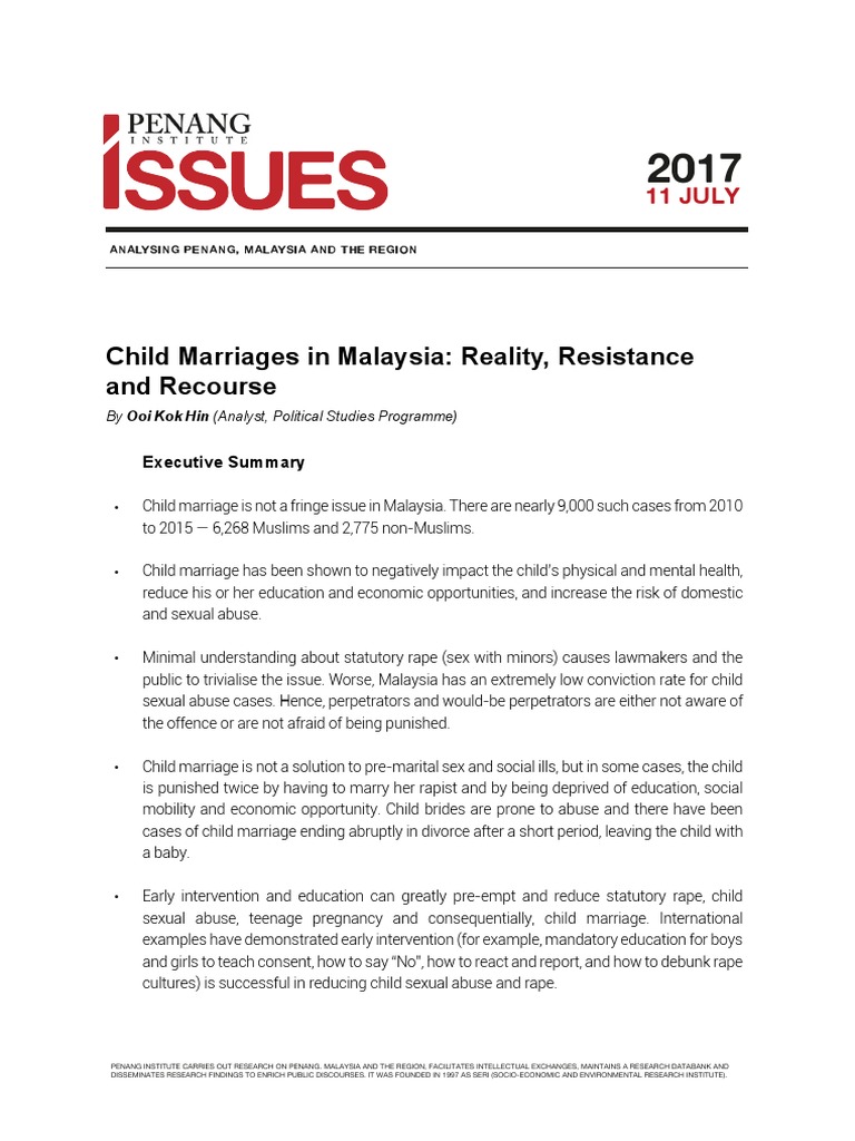 Child Marriages In Malaysia Reality Resistance And Recourse Penang Institute