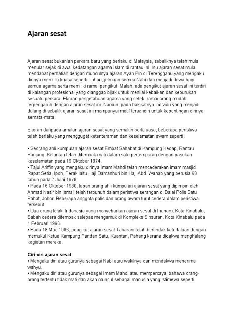 Doc Ciri Ciri Ajaran Sesat Hisham Jaffar Academia Edu