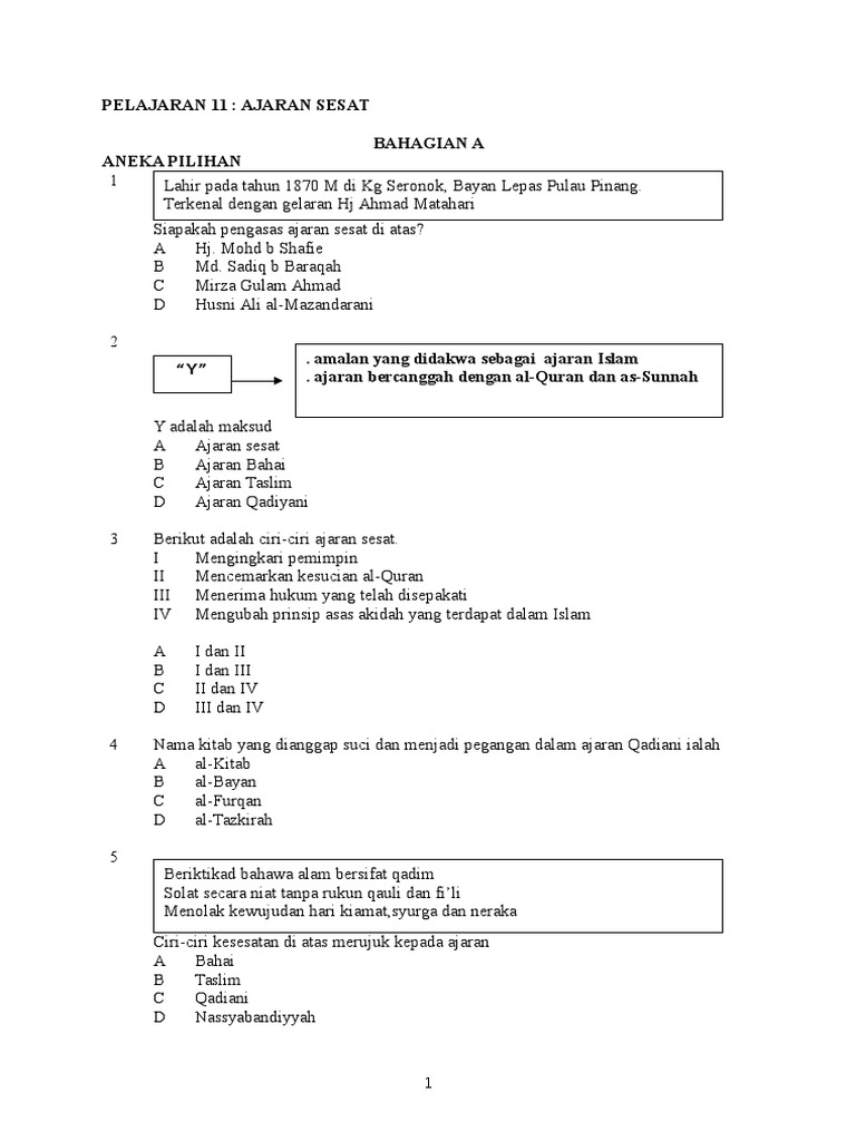 P Islam Soalan Akidah K1 T5 Ajaran Sesat