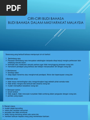 Ciri Ciri Budi Bahasa Dan Masyarakat Pptx Ciri U2013 Ciri Budi Bahasa Serta Budi Bahasa Dalam Masyarakat Disediakan Oleh Kumpulan Kacak 1 Liew Zi Yue 2 Course Hero