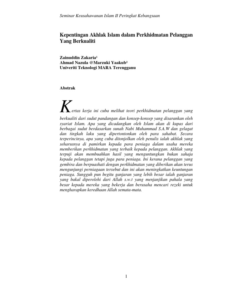 Kepentingan Akhlak Islam Dalam Perkhidmatan Pelanggan Yang Berkualiti