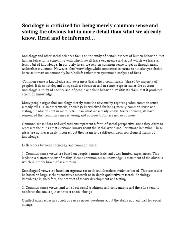 Sociology And Common Sense Sociology Scientific Method