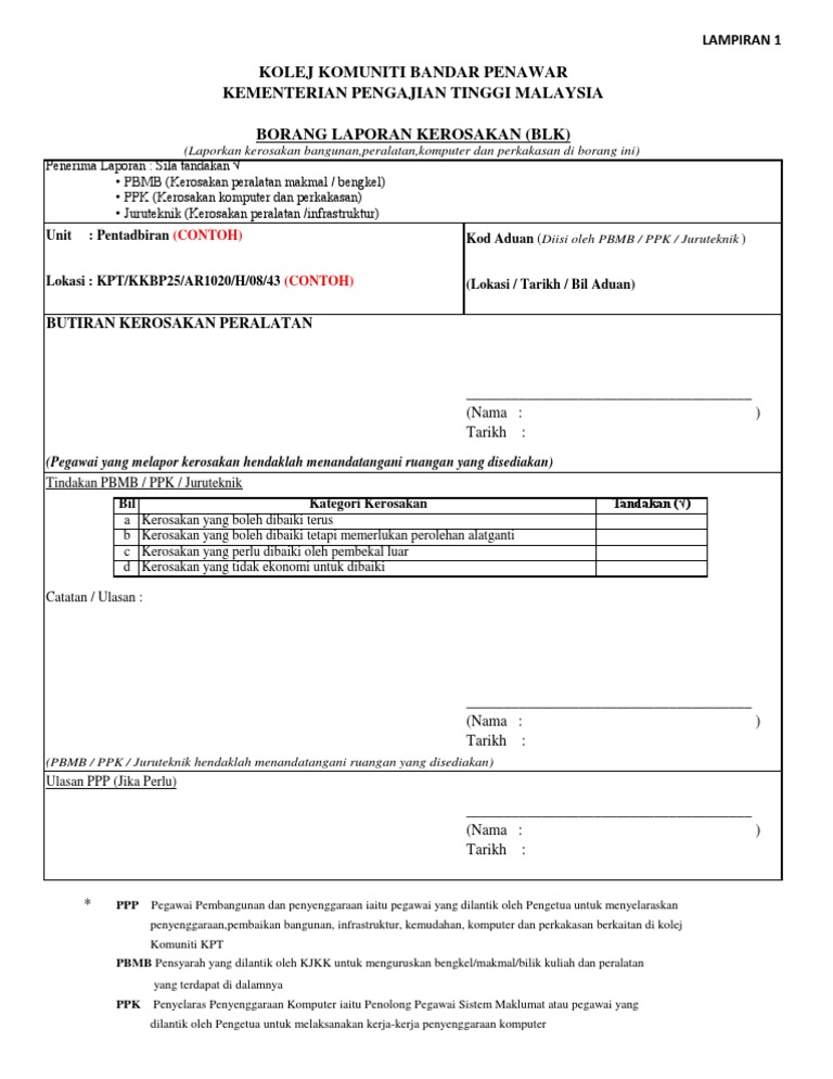 Contoh Borang Aduan Kerosakan Peralatan Ict 1 Pdf