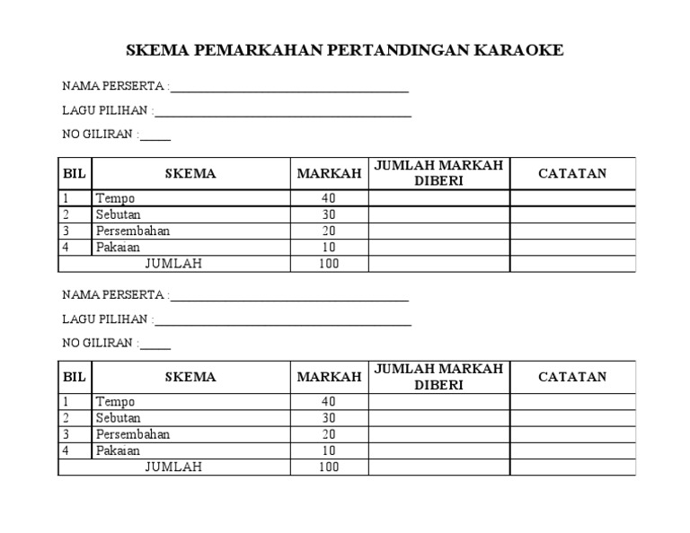 Borang Pemarkahan Pertandingan Karaoke Docx