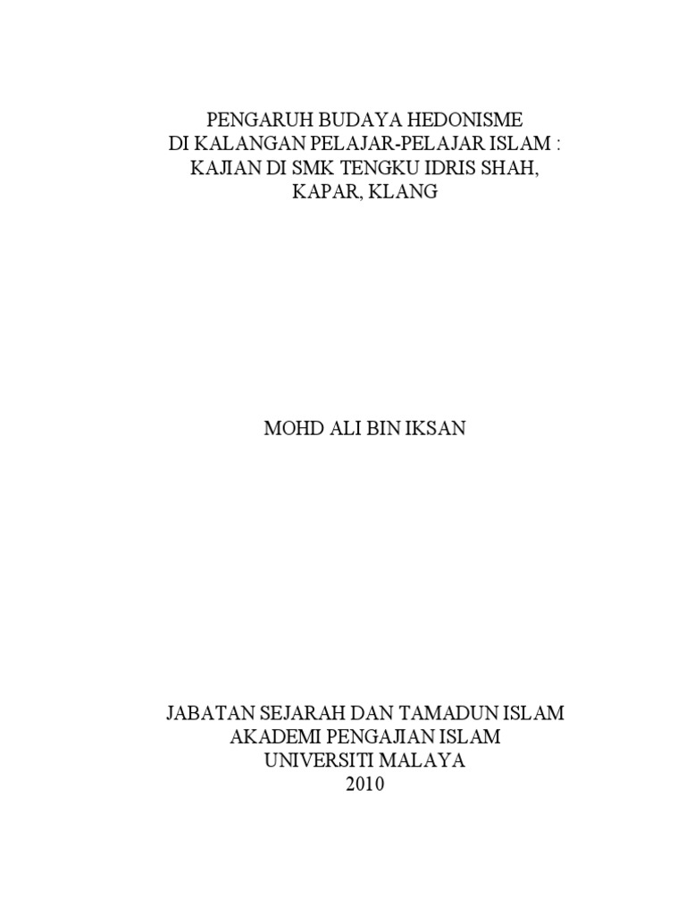 Doc Pengaruh Hedonisme Terhadap Ketamadunan Malaysia Melalui Teknologi Eason Pang Academia Edu