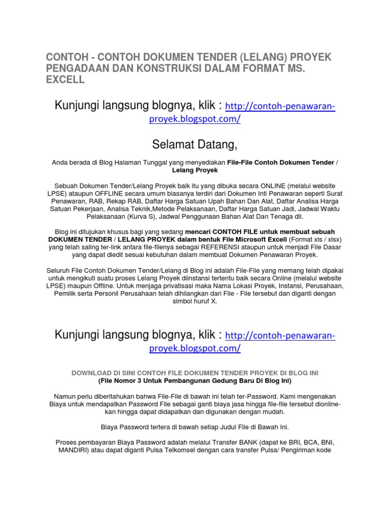 Contoh Dokumen Lelang Untuk Jasa Konstruksi