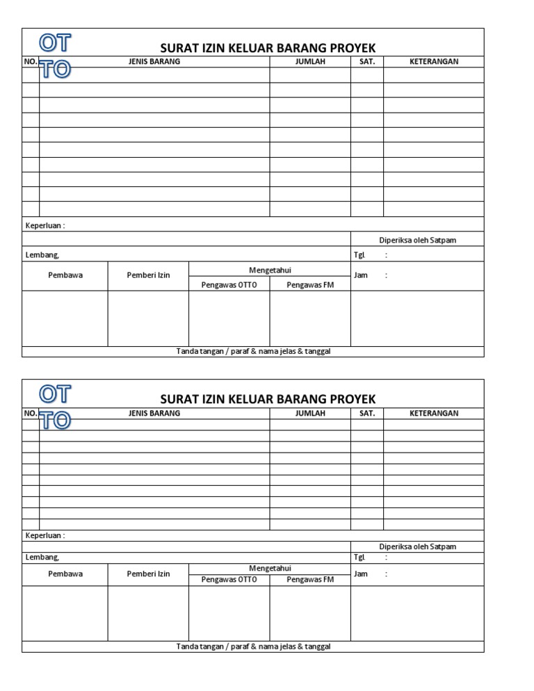 Form Izin Keluar Barang