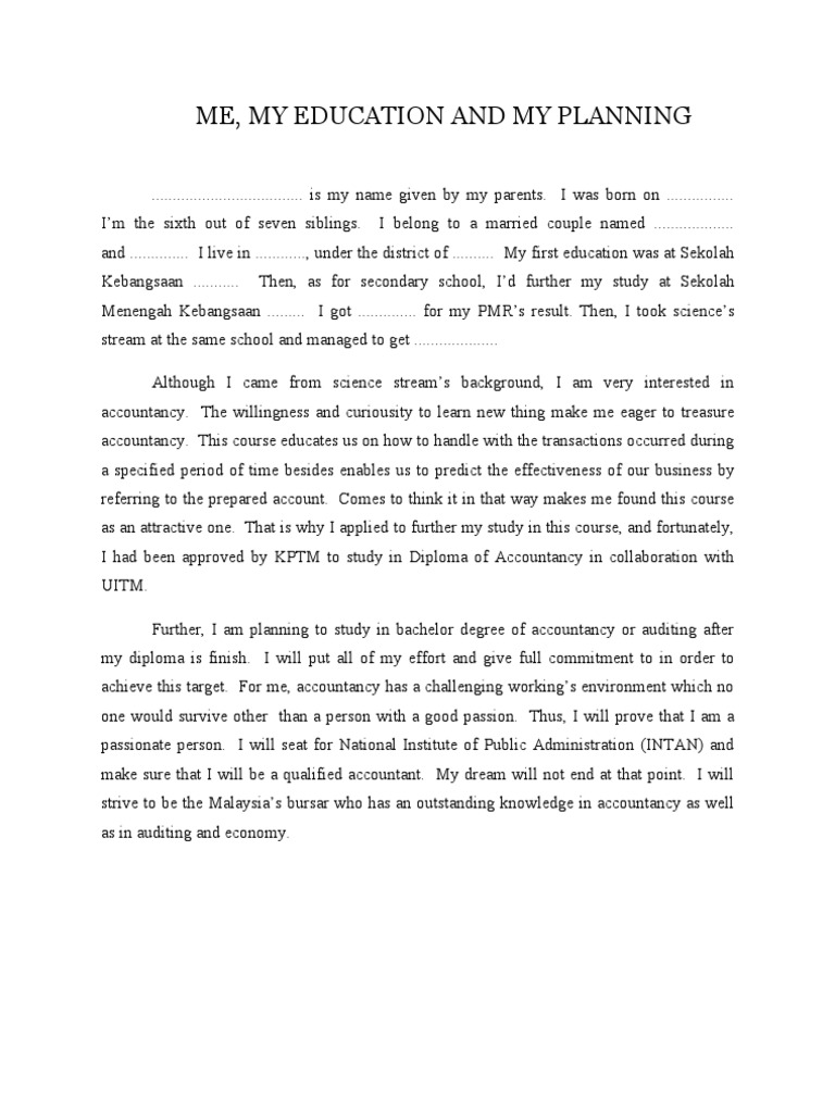 Contoh Karangan Perihal Diri Perancangan Pengajian Dan Kerjaya Yunfila Com