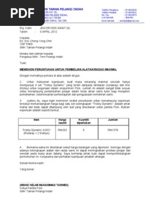 Surat Rasmi Permohonan Peralatan Surat Rasmi Q
