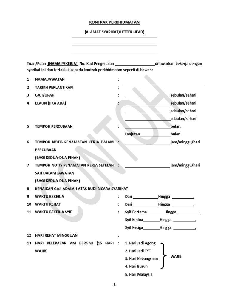Contoh Surat Kontrak Kerja Malaysia Backup Gambar