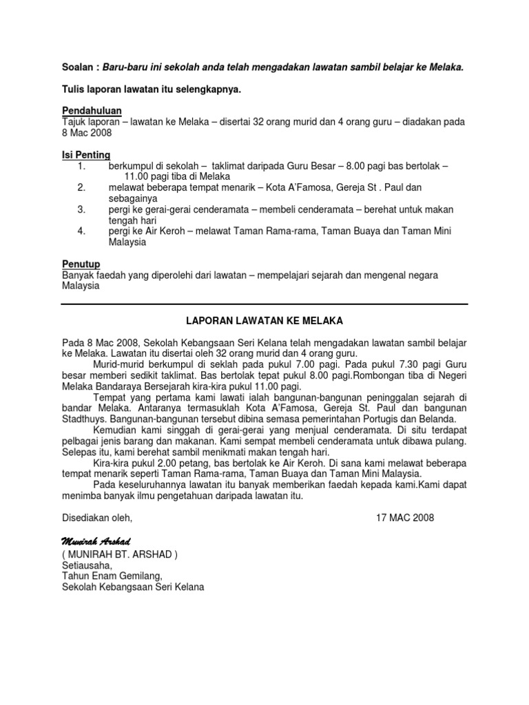 Contoh Karangan Laporan Lawatan Sambil Belajar Ke Tempat Bersejarah Rasmi F