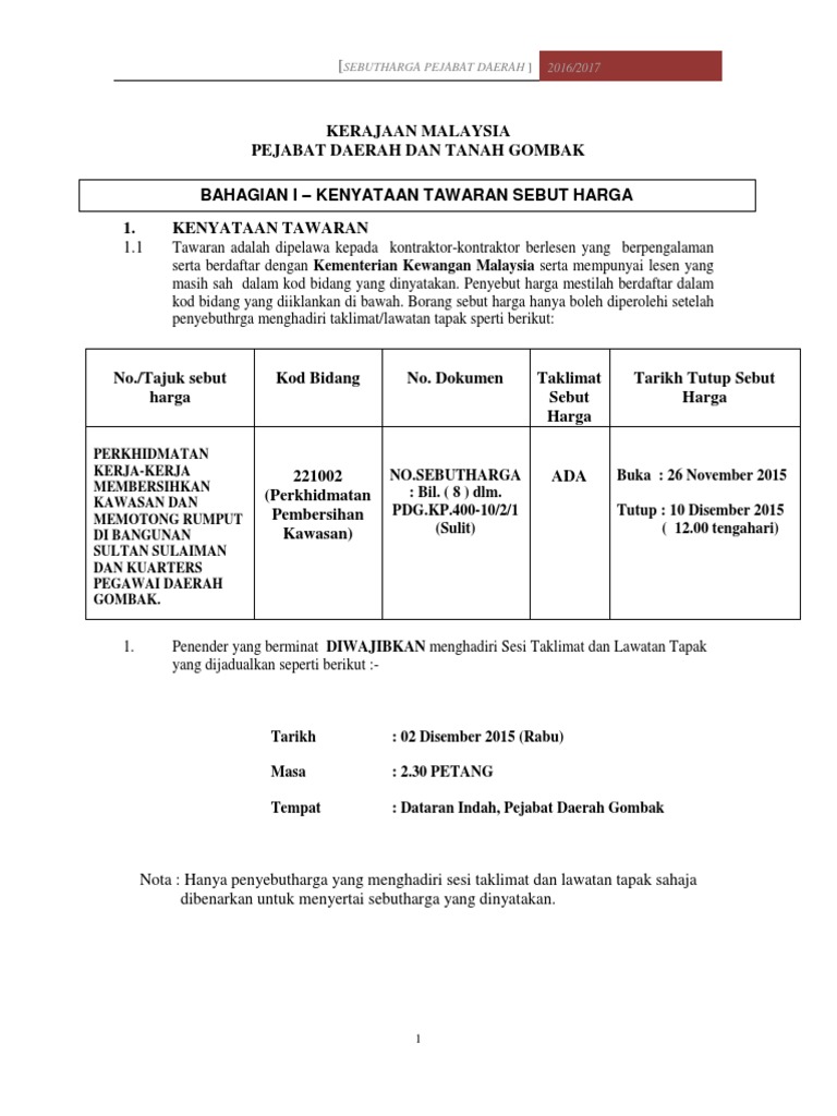 Contoh Surat Rasmi Sebut Harga J Kosong V
