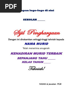 Contoh Sijil Penghargaan Dan Boleh Diedit