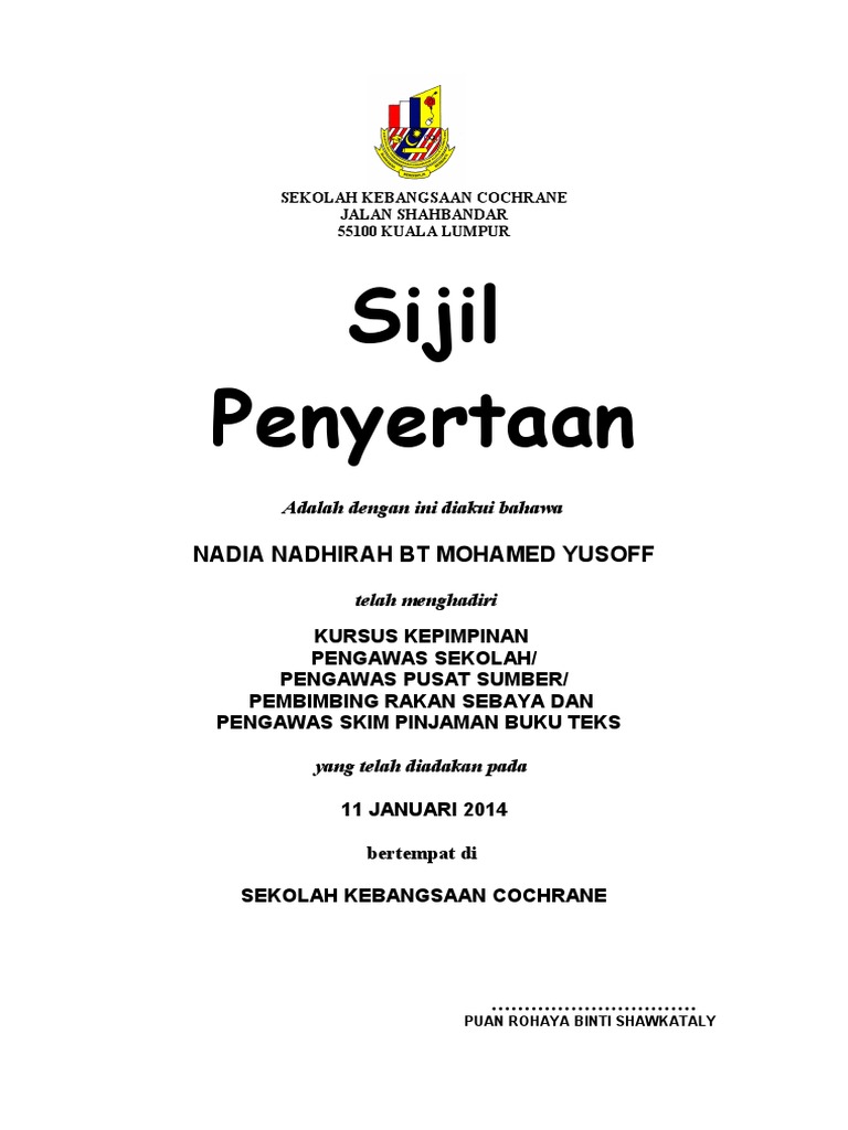 Doc Template Sijil Nurul Amalia Academia Edu