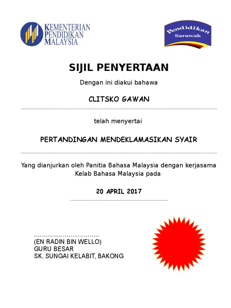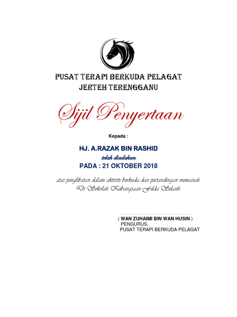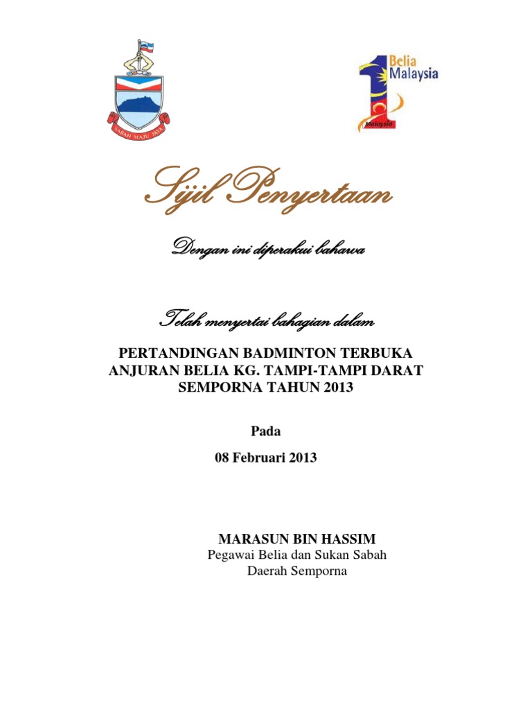 Contoh Sijil Penghargaan Dan Penyertaan Pdf Document