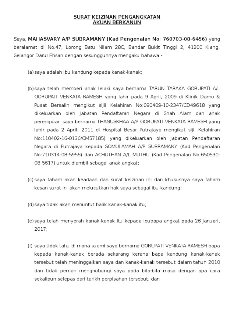 18 Contoh Surat Akuan Mengambil Anak Angkat